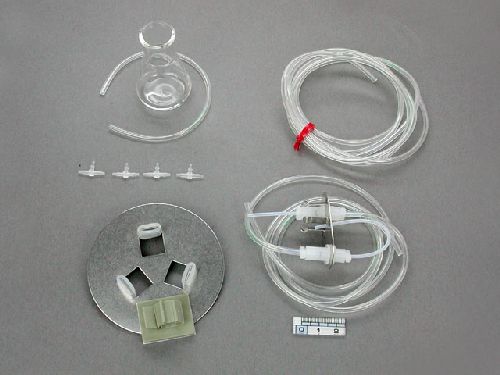 Pump seal wash kit inlcuding PE tubing, check vales, 4 unions, base plate, and glass flask.