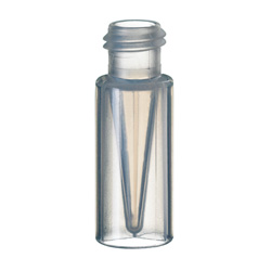 300 µL clear polypropylene vial only, 100/pk. 12 x 32mm overall dimensions with clear 300 µL conical polypropylene insert. For any LC or GC autosampler with a 12 x 32mm rack. Decrease the needle stroke by 3-4mm to prevent needle damage. Requires cap 220-97331-27 with non-slit PTFE/silicone septa, cap 220-97331-28 with pre-slit PTFE/silicone septa, or PE septumless cap 220-91521-12. Note that the septumless cap is a thin membrane and NOT resealable after punctured by the autosampler needle. For multiple injections from the same vial, a cap with a PTFE/silicone septum is recommended. Replacement for 220-91521-05.