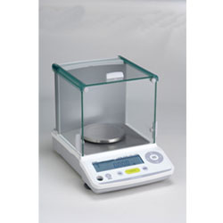 TW223L analytical balance with a maximum capacity of 220 g and a minimum display of 0.001 g. Included are: UniBloc technology, internal calibration, a menu operation key, easy setting, a backlight, Windows Direct capability, a RS-232C interface, checkweighing, piece counting, Carat measurement, and a formulation mode.