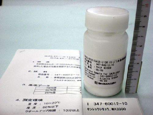 WA3000 reference standard for verifying particle size accuracy using the DS5 dry measurement unit for the SALD-3101 laser diffraction particle size analyzer main measurement unit. Included with the reference standard is an instruction manual.