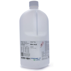 Nitric acid 67-70%, Extrapure for trace metal analysis at the parts-per-billion (ppb) level. 2500 mL in HDPE bottle. For ICP or ICPMS.